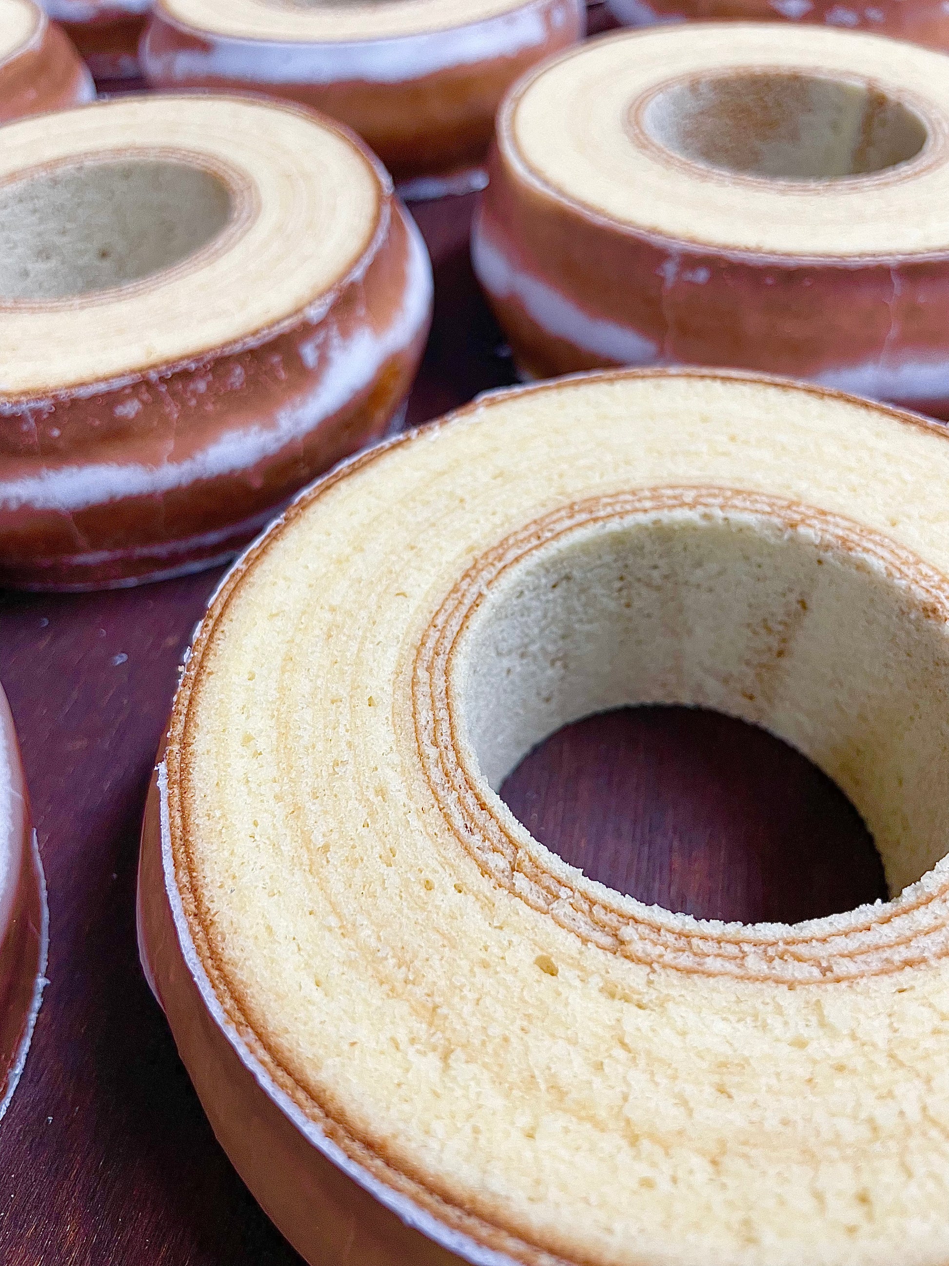 生地における卵の比率や、油脂は純粋なバターのみ、ベーキングパウダーなどの膨張剤は使用しないなど、数々の厳しい基準をクリアしたものだけが本物のバウムクーヘンと認められます。