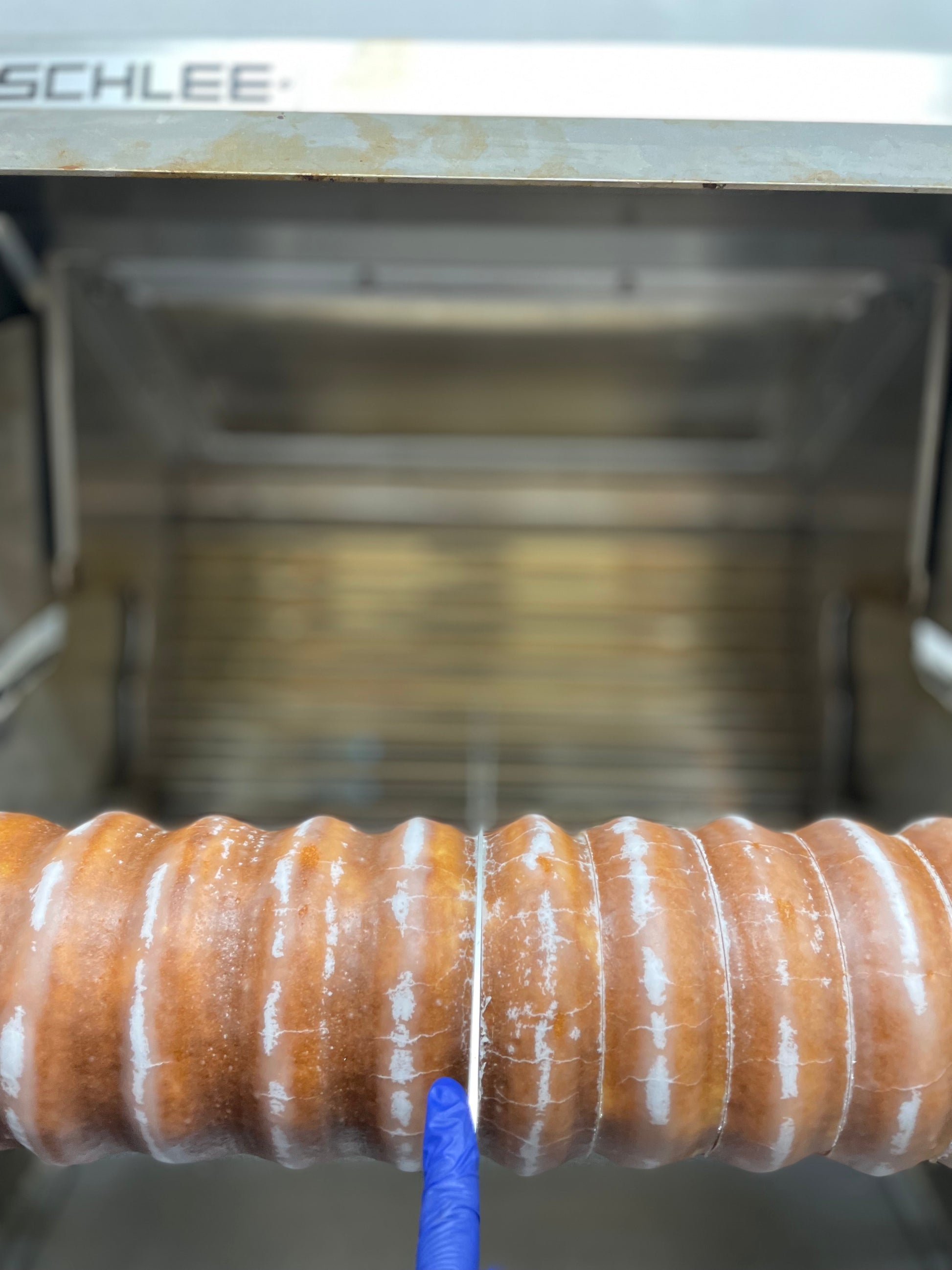 生地を用意してから、1本焼くのに約1時間近くかかりますが、小さめの機械なので、1度に10個しか焼けません。