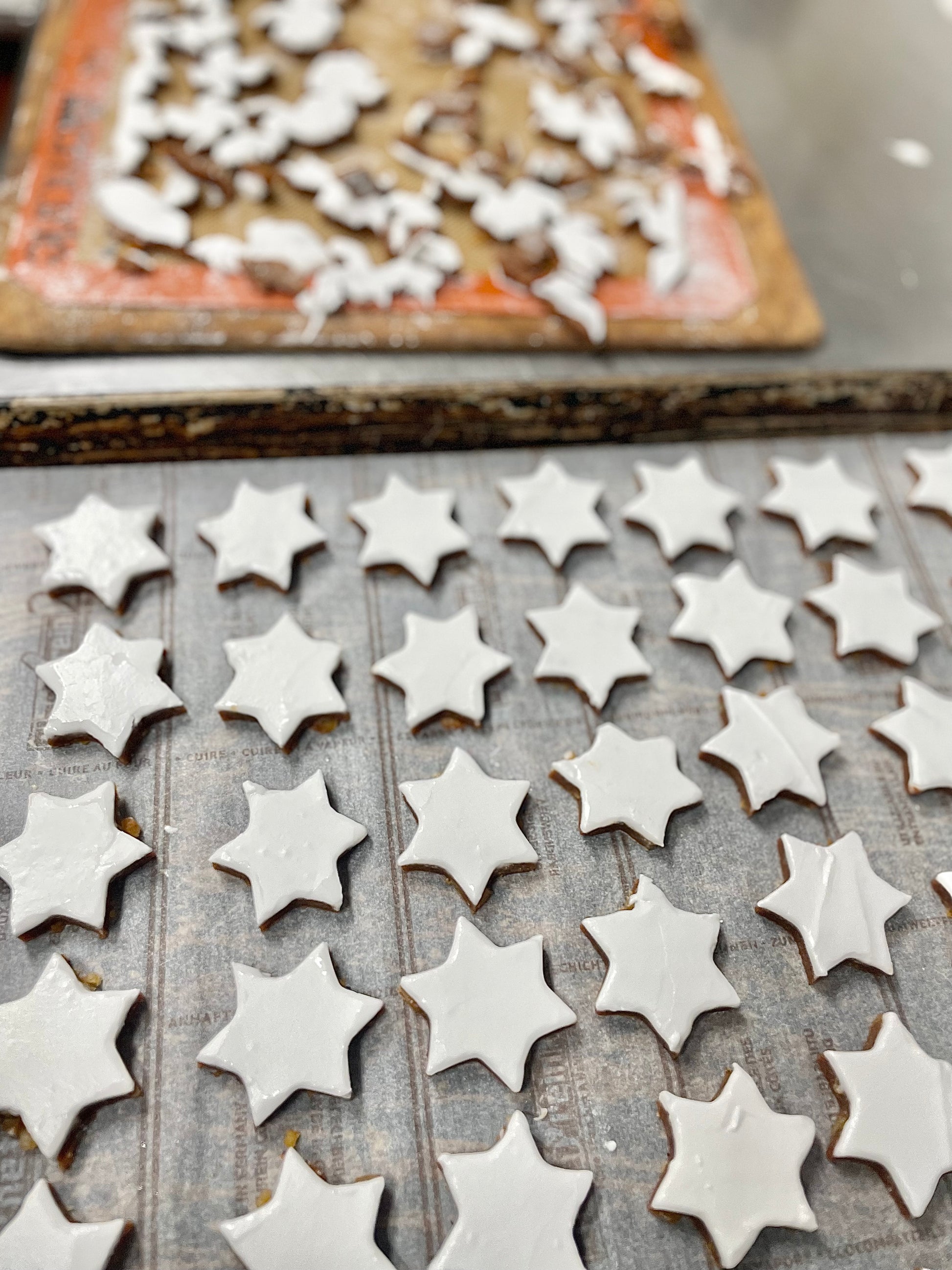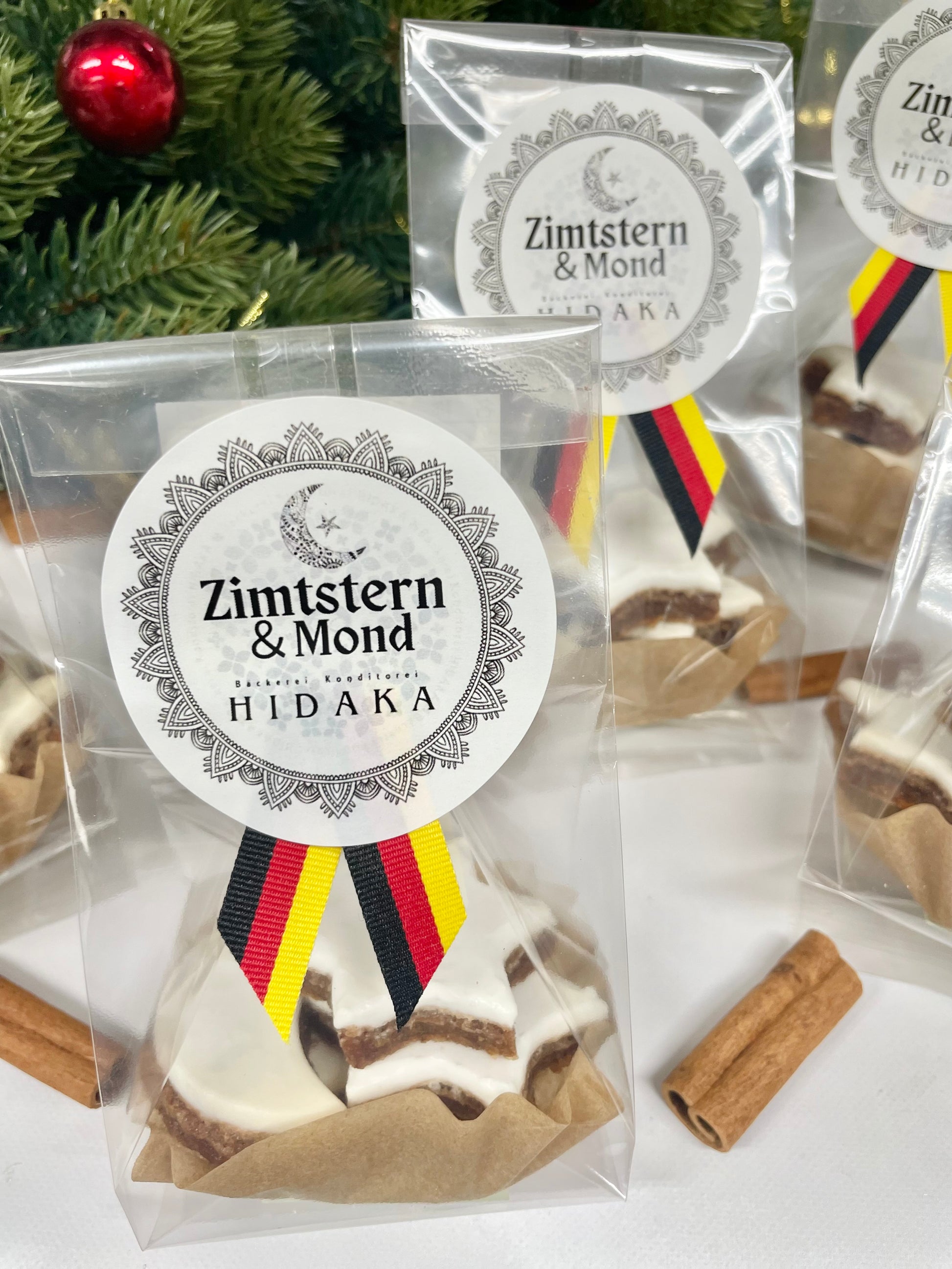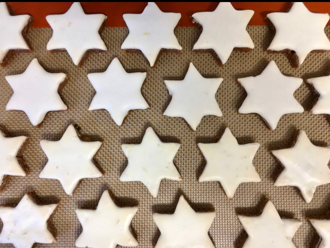 ヒダカのツィムトシュテルンはドイツの菓子屋で作っていた時の様に、星だけでなく、三日月(モーンド)も入っています。あとシナモンだけでなく、相性のよい柑橘のピールもたっぷり加えています。