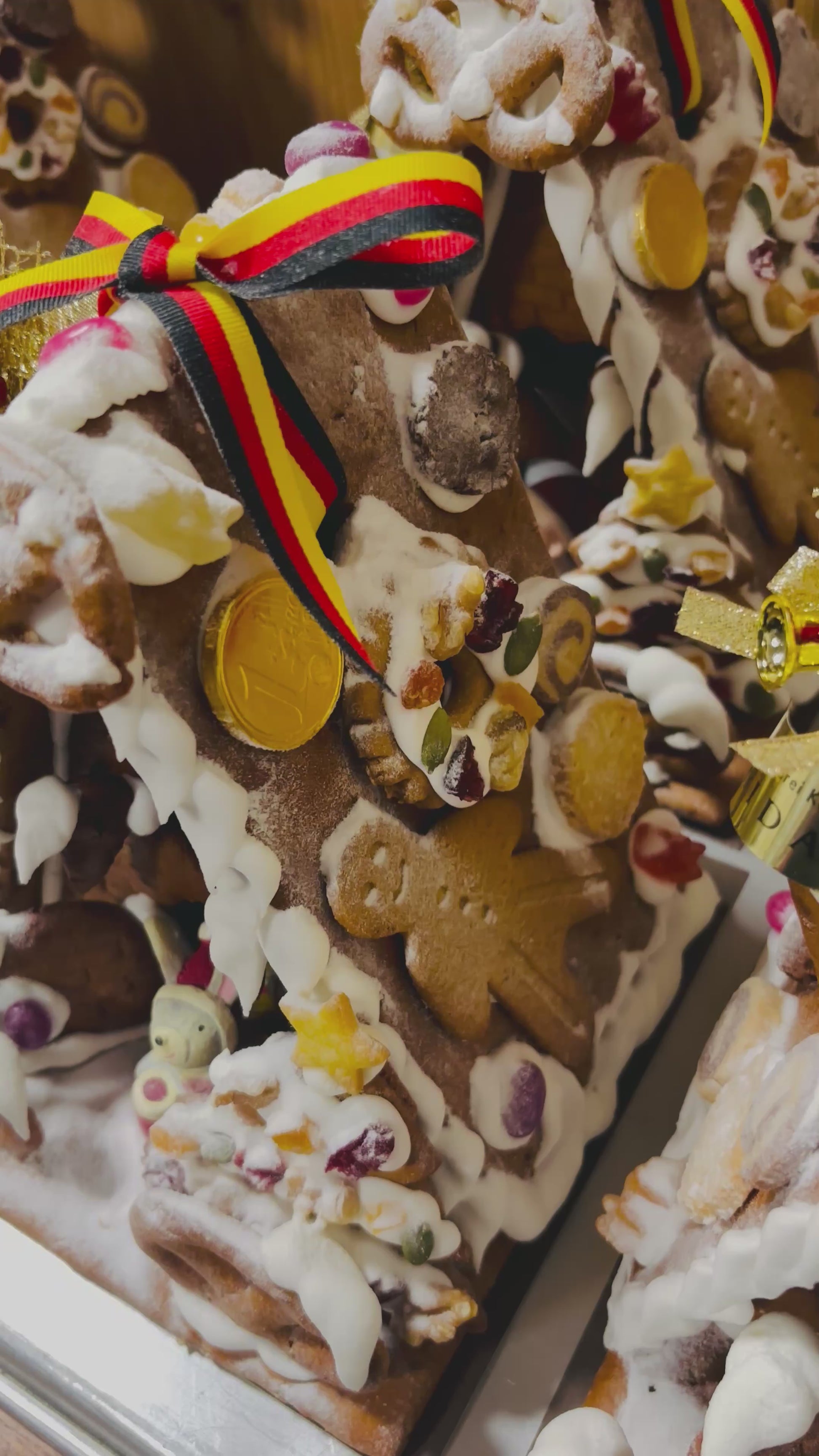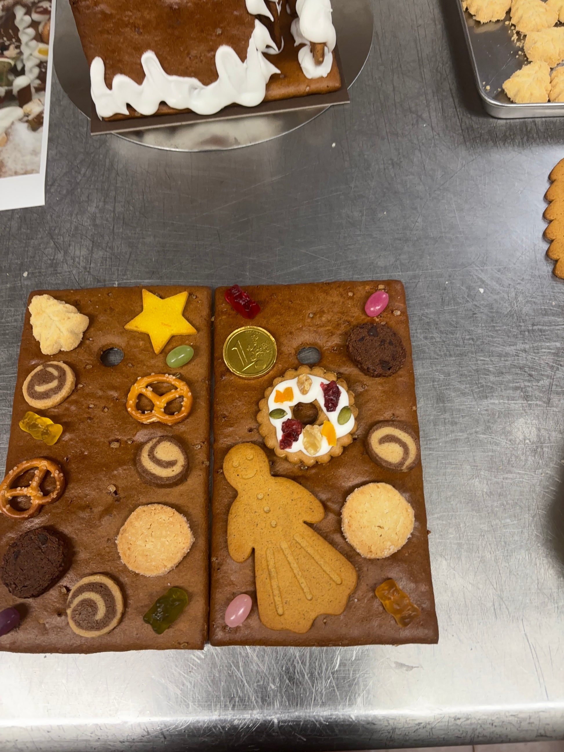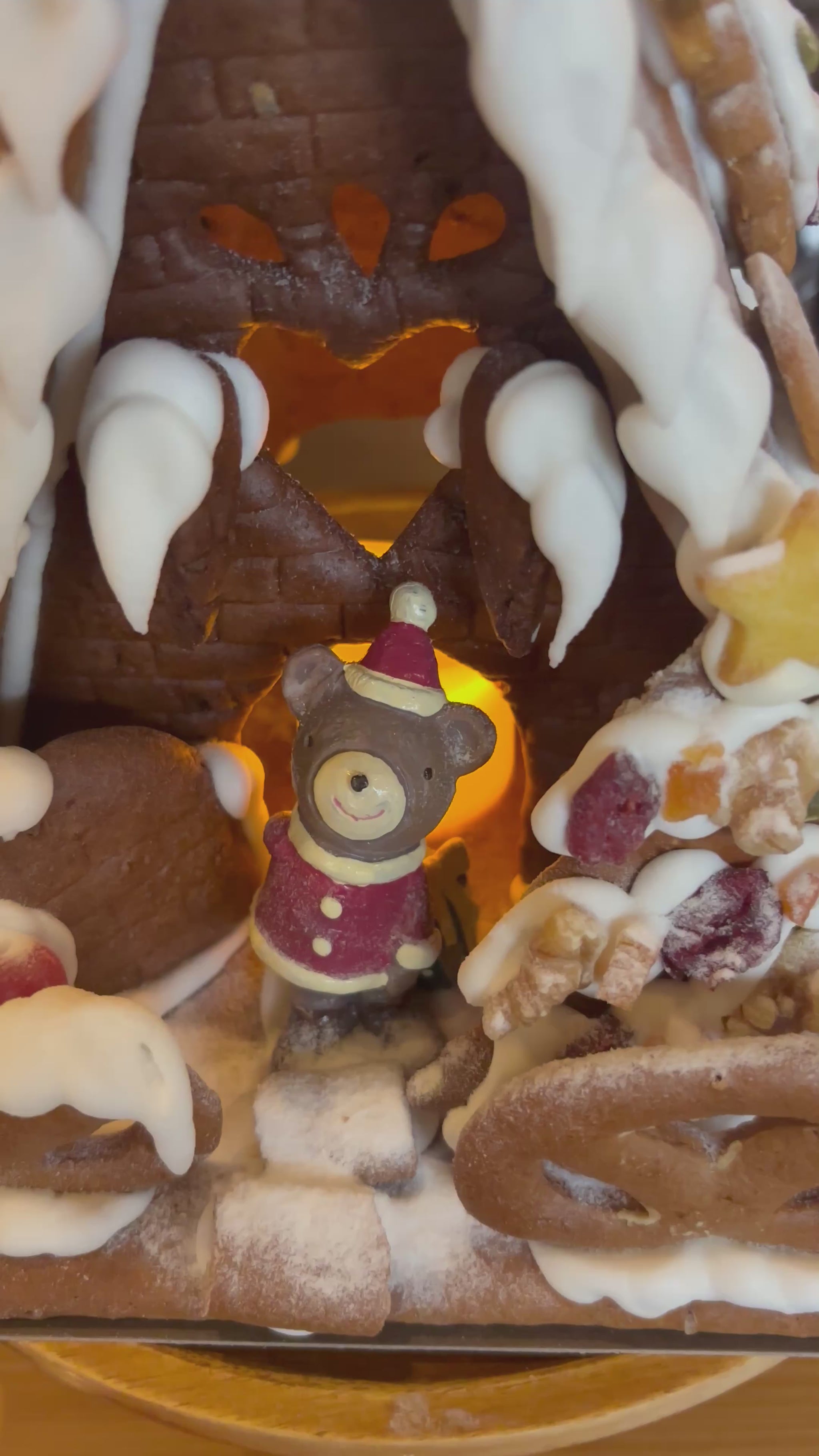 ドイツのスパイスの効いたレープクーヘン(蜂蜜のクッキー)生地で作った、まるごと全て食べられるヘクセンハウス(=魔女のおうち)です。